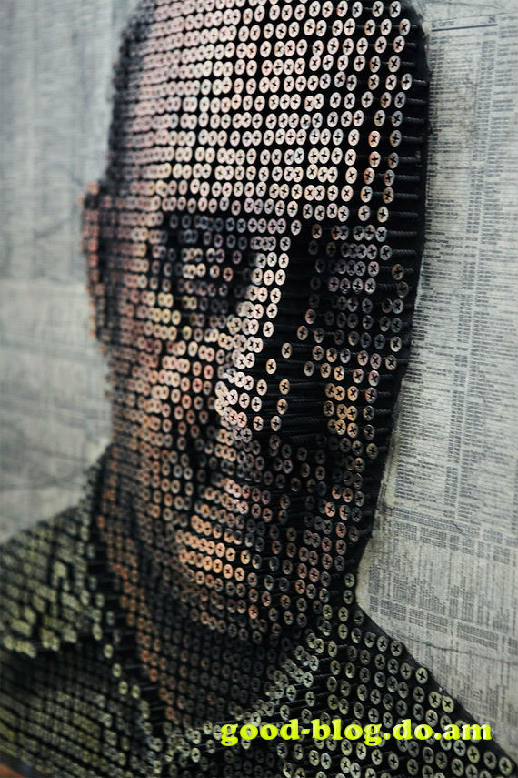 Ամերիկացի քանդակագործ և նկարիչ Էնդրյու Մեյրեսը ստեղծում է 3D նկարներ պտուտակներից: Նրա աշխատանքները յուրահատուկ են նրանով, որ նա չի օգտագործում կոմպյուտերային գրաֆիկա: Ամեն մի աշխատանքի համար օգտագործվում է մոտ 1000 պտուտակ: Եռաչափ էֆեկտը նա ստանում է պտուտակները տարբեր հարթությունների վրա ձգելով: Որպեսզի նկարը երևա ավելի իրական, նա պտուտակների վրա ներկ է քսում: Նրա նկարները մասնակցում են մի շարք միջազգային ցուցադրությունների և հայտնվում են շատ ամսագրերում: | |